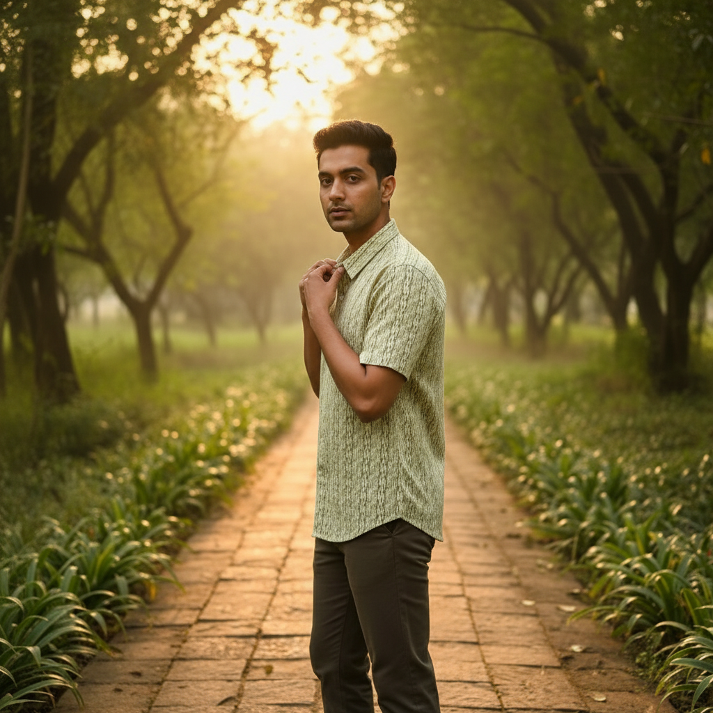 A classic green stripe shirt designed with clean vertical lines for a sharp, elongated look. Fresh, versatile, and comfortable, it’s an easy essential that moves seamlessly from everyday wear to elevated styling.