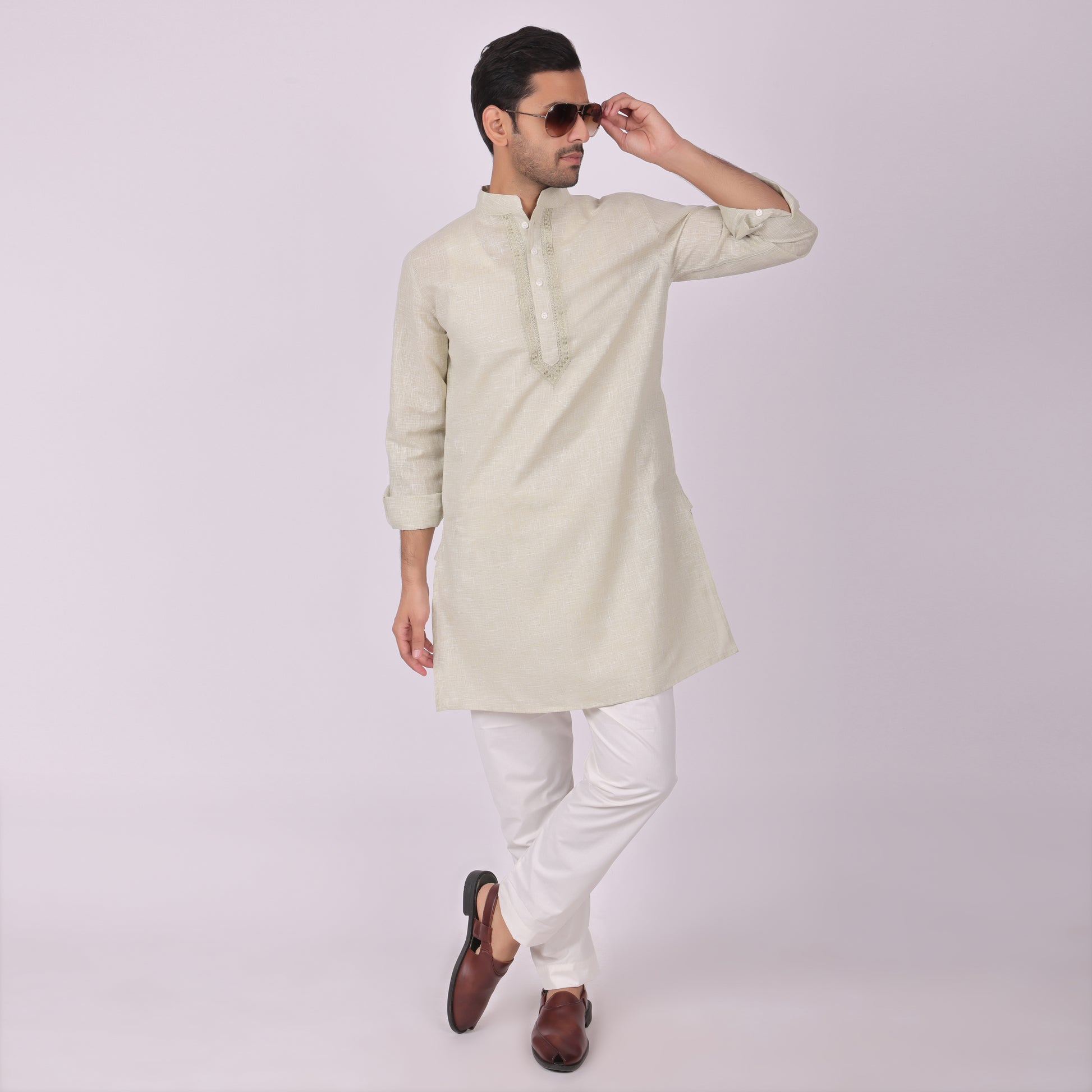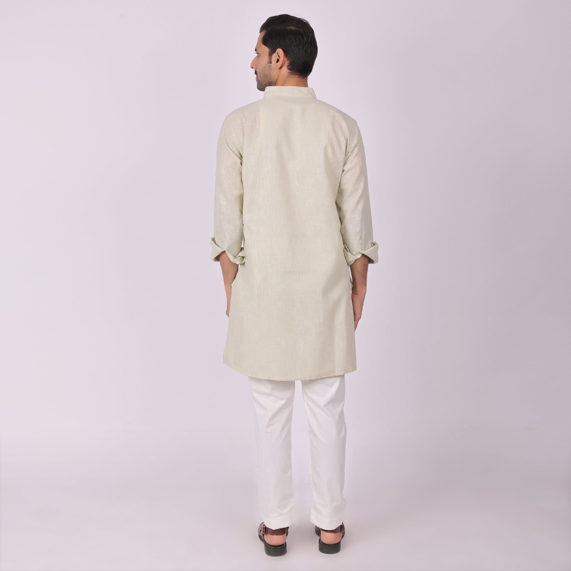 Designed for understated elegance, this Sea-Mist kurta features refined tonal embroidery that blends seamlessly with the fabric for a clean and sophisticated look.